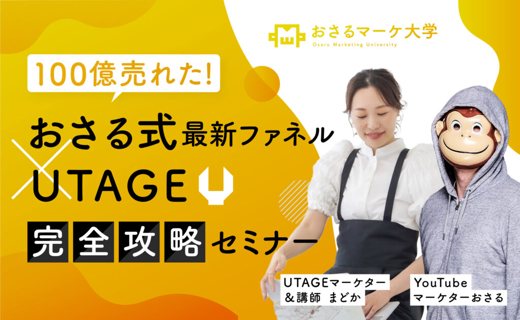 おさるマーケ大学 UTAGEファネル構築講座についてブログでもご紹介させてください。